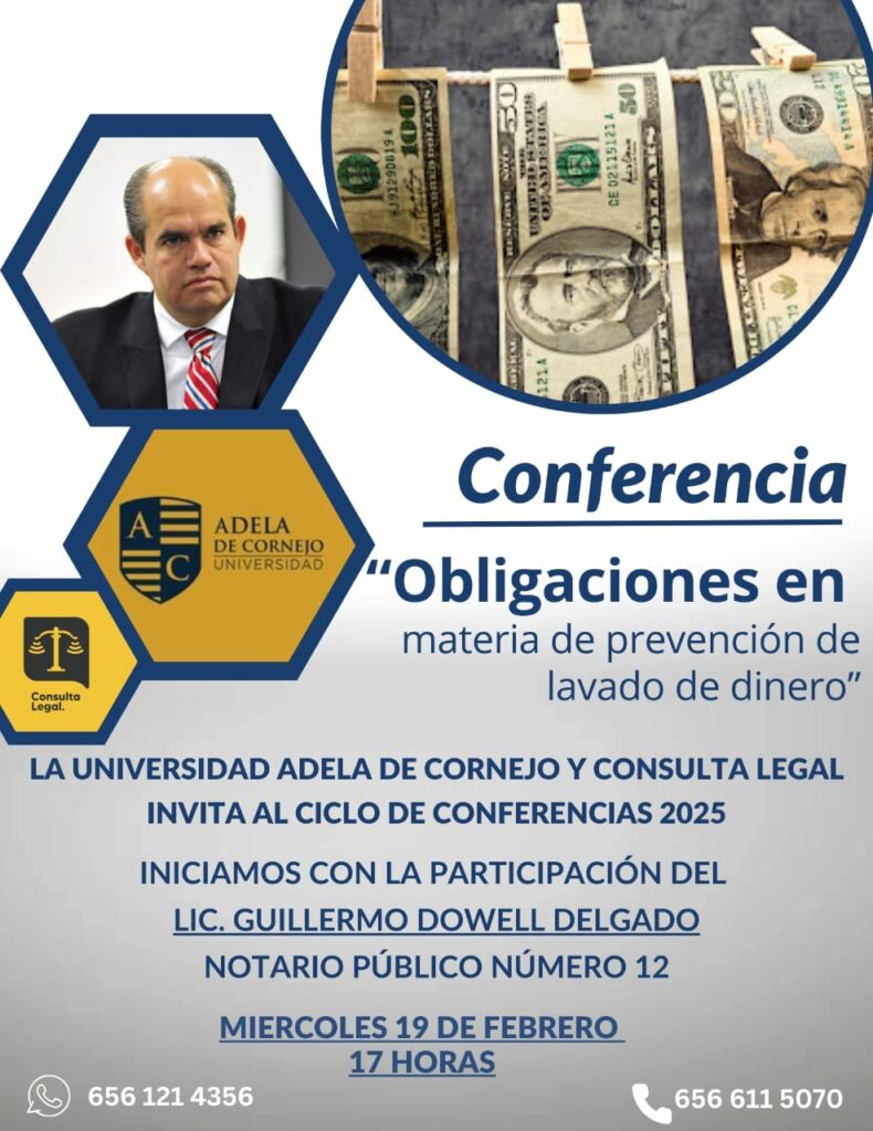 En la conferencia titulada “Obligaciones en materia de prevención de lavado de dinero”, se abordarán los pasos a seguir para cumplir los requerimientos que el Servicio de Administración Tributaria (SAT), pide al momento de la compra de una propiedad y así evitar ser víctima de actos como el lavado de dinero.