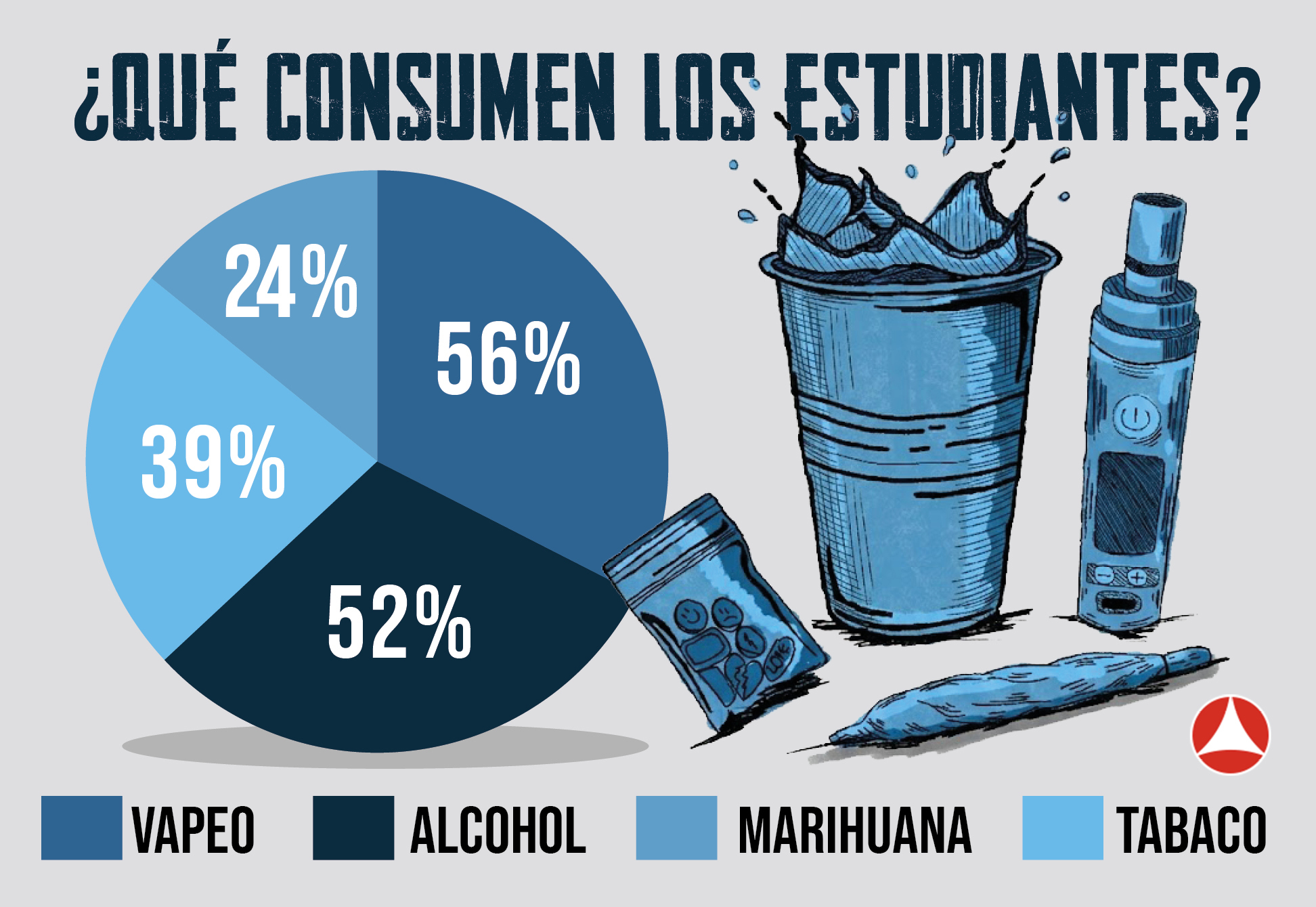 El 39 por ciento de la muestra (304 estudiantes) manifestó consumir cigarros de tabaco. El 56 por ciento (433 alumnos) utilizaba productos de vapeo al momento de la entrevista. Más del 52 por ciento (402 consultados) había consumido alcohol alguna vez, y 66 estudiantes señalaron haberlo hecho a los ocho años o menos.