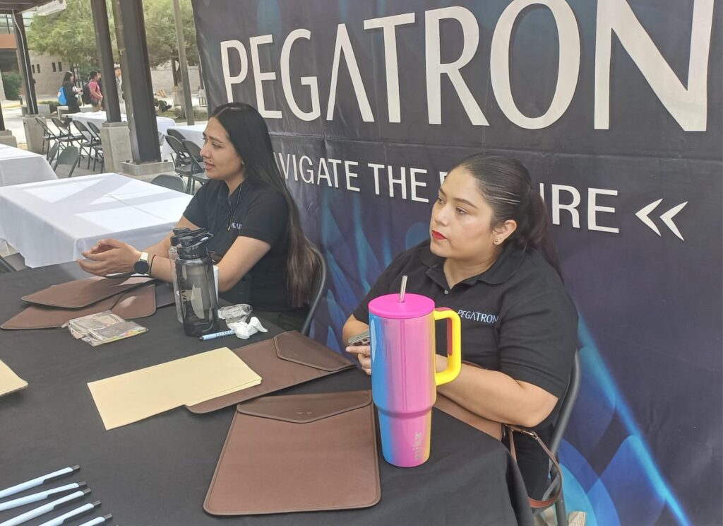 Personal de contratación de Wistron acudió a la feria en busca de personas sin experiencia en áreas de Electrónica, Mecatrónica, Sistemas y Electromecánica, a quienes ofrece un salario de 558 pesos diarios y bono semanal de 600 pesos.