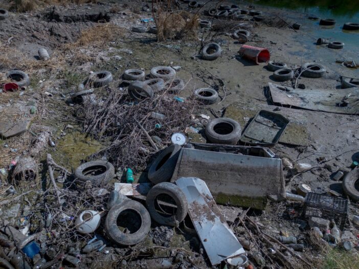 Toneladas de basura, llantas, muebles viejos y hasta autopartes fueron localizadas en el dique de la colonia El Mezquital, utilizado por los propios vecinos como tiradero clandestino y convertido en un foco de infección que impide el buen funcionamiento del sistema de drenaje.