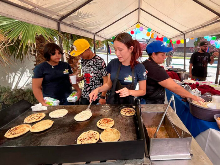 La historia de Karla es parecida. Mientras se afana en rellenar una bola de masa con un guisado de pollo y queso que después coloca en una plancha caliente, ella contó que ese alimento se llama pupusa.
