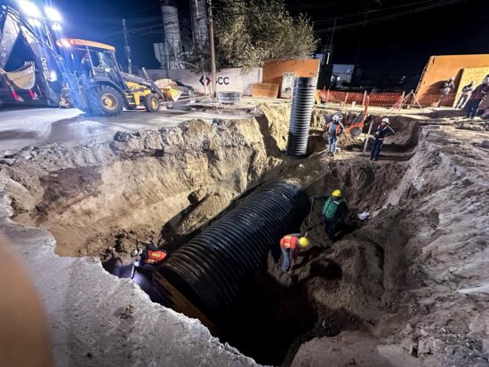 Las obras que se realizan este día se sitúan en el tramo comprendido entre las calles Pablo L. Sidar y Ramón Aranda, justo a espaldas de la Escuela Primaria Federal Porfirio Parra, establece el reporte de la JMAS.