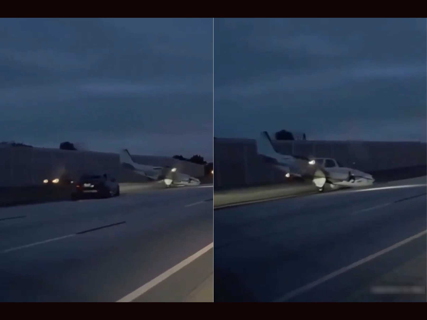 El piloto, un hombre de 27 años, intentó aterrizar en la autopista como opción de emergencia, pero la aeronave descendió rápidamente y colisionó con el techo del Camry, rebotó dos veces y se deslizó por el asfalto generando una nube de chispas antes de detenerse.