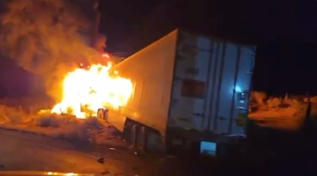 Según los reportes, el accidente ocurrió durante las últimas horas, entre la noche del domingo y la madrugada del lunes, cuando uno de los pesados vehículos chocó contra la caja del otro, provocando que se saliera de la carretera y se incendiara.