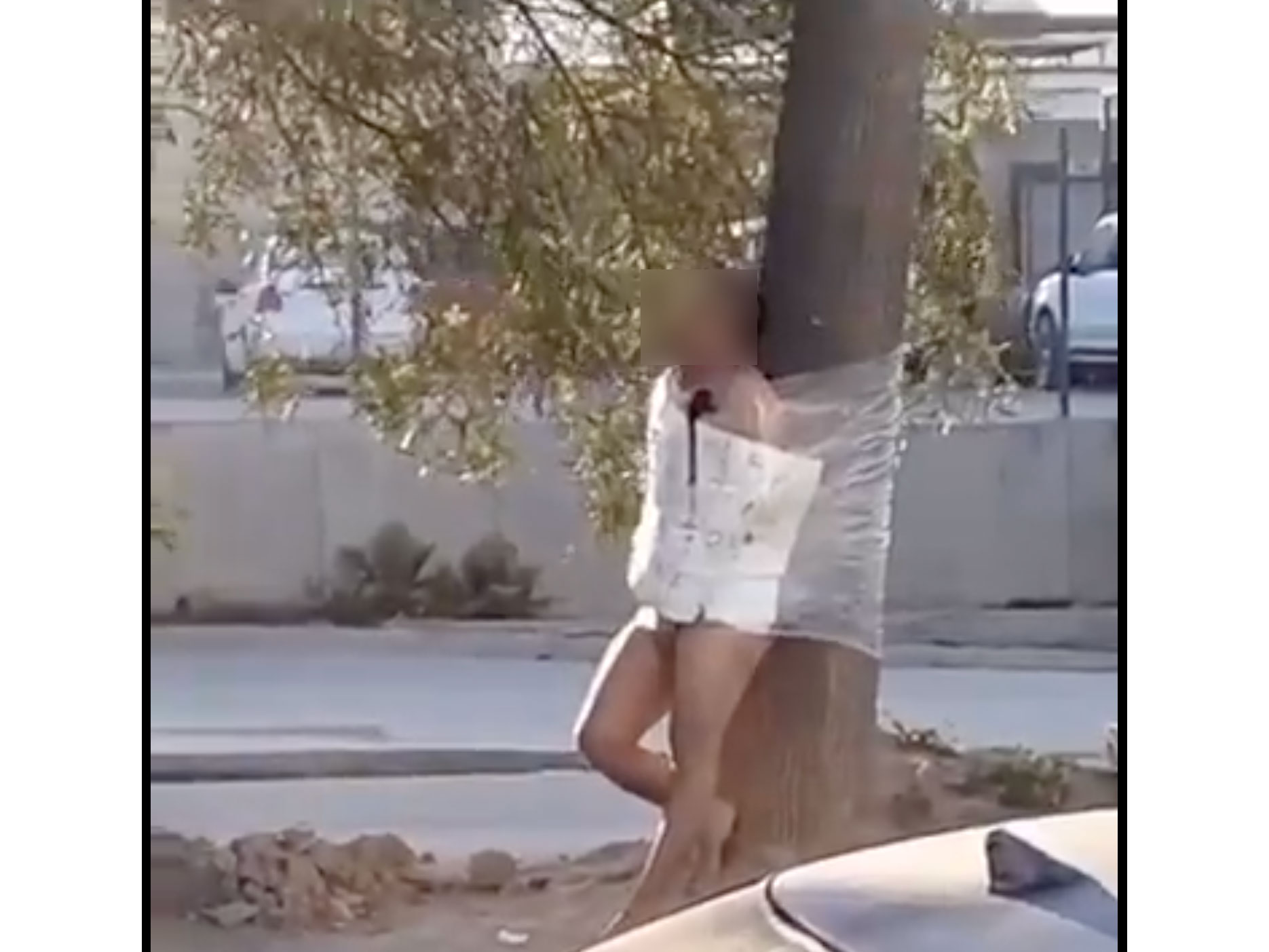 En Tijuana un hombre fue amarrado a un árbol con una cartulina que llevaba el mensaje “Por infiel”, hecho registrado en Delicias 1, a un costado de una tienda Bodega Aurrera.