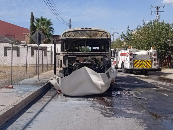 Luego de que vecinos del cruce de la calle Mitla e Independencia de la colonia Lino Vargas reportaran el incendio de un camión de transporte de personal, autoridades de Protección Civil y Bomberos acudieron al lugar para sofocar el fuego e iniciar con las primeras investigaciones.