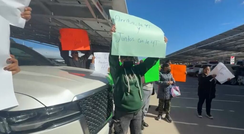Los mensajes se mantuvieron elevados a la altura del pecho y por encima de la cabeza, buscando quedar a la vista del propio Arriaga y de los medios presentes. No se observaron consignas de apoyo ni cartulinas de bienvenida, lo que subrayó el tono crítico del recibimiento.