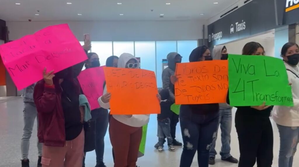 También se leyeron consignas como “No a los libros de Marx Arriaga” y “Fuera de la SEP”, en alusión directa a su influencia en los contenidos escolares impulsados desde el gobierno federal. Algunas cartulinas combinaron el rechazo personal con referencias políticas, como “Arriba la 4T… pero sin Arriaga”, mientras que otras optaron por frases breves y contundentes para asegurar su lectura inmediata durante el paso del funcionario.