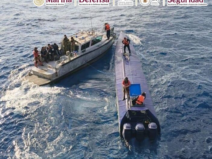 La Secretaría de Marina aseguró un semisumergible que transportaba alrededor de 4 toneladas de cocaína frente a las costas de Manzanillo, Colima, como parte de los operativos permanentes de vigilancia marítima en el Pacífico mexicano.