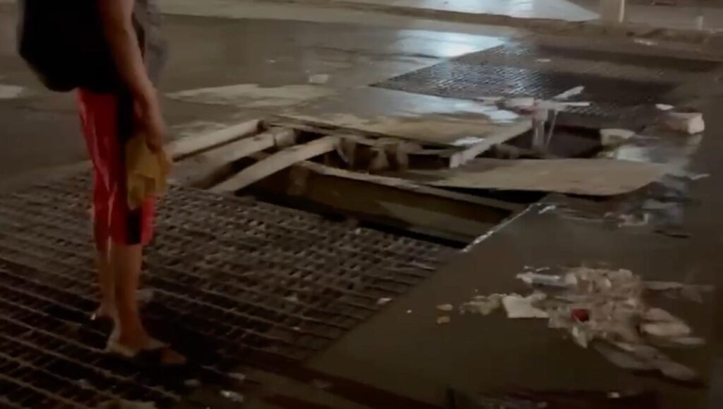 El problema de fondo, sin embargo, es grave. La camioneta cayó porque una de las alcantarillas del sistema de drenaje pluvial colapsó. Las rejillas estaban rotas, como muchas otras en esa misma calle, lo cual ya es un riesgo constante para cualquiera que pase por ahí, sea a pie o en coche.