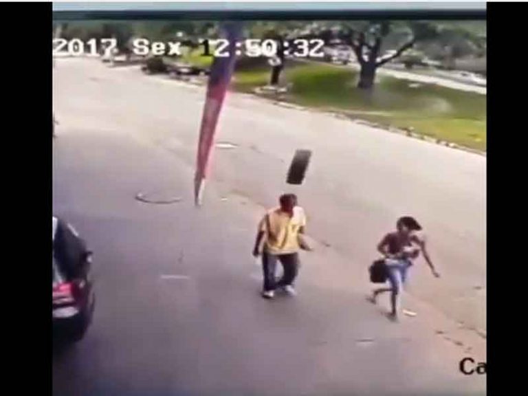 Video: Llanta golpea a hombre en Brasil