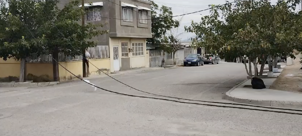 Mientras lo anterior sucede, los vecinos tratan de sortear los cables y el poste para evitar dañar sus vehículos. Aunque vecinos indicaron que no hay cables de alta tensión, se vieron preocupados debido a que hay un montón de cables expuestos que podrían representar un peligro..