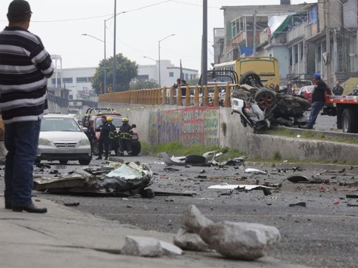 Ahí, el cuerpo de un hombre que salió disparado del auto, el cual siguió volcándose por varios metros y cruzó de un sentido al lado contrario de la circulación hasta quedar incrustado en un desnivel y muro de contención de la avenida Lago de Guadalupe totalmente destrozado.