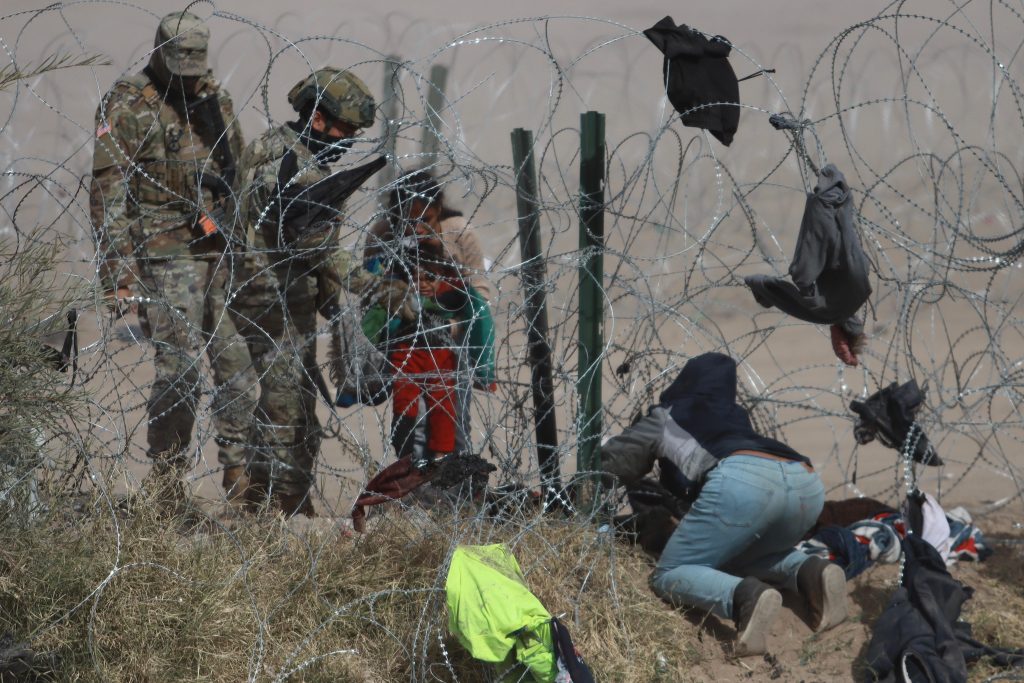 Después de que la familia cruzó la valla con púas y navajas, los militares reforzaron el espacio para evitar más cruces.