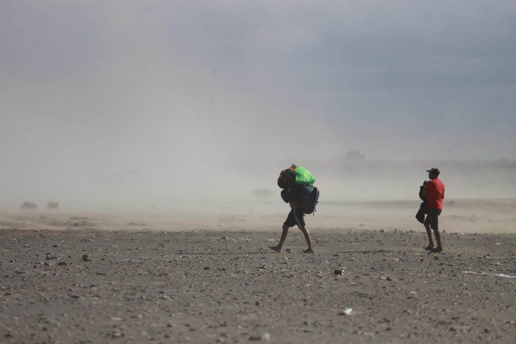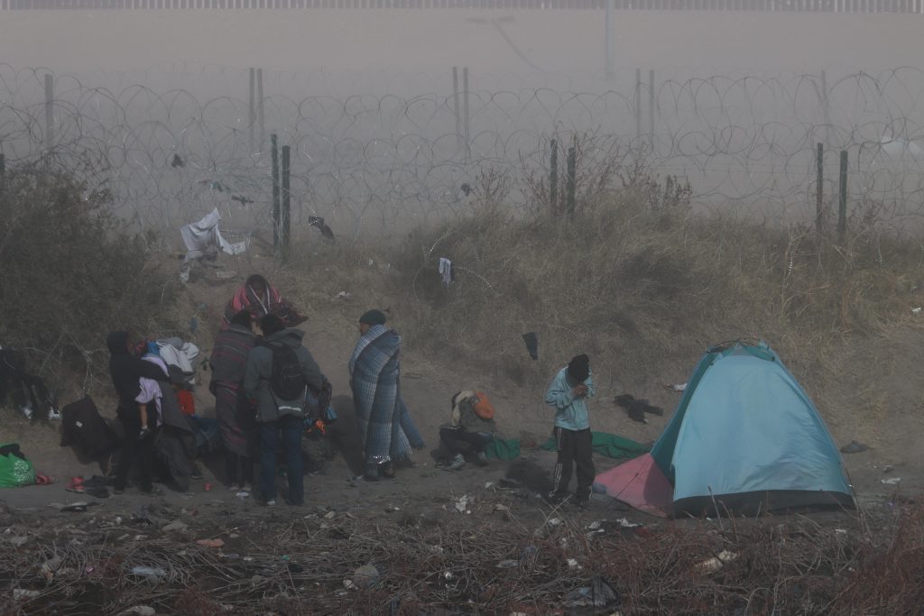 Esta mañana en medio de las ráfagas de viento que superaban los 45 kilómetros por hora y con una temperatura que no rebasaba los 10 grados centígrados, adultos y niños se colocaron alrededor de una fogata encendida para mitigar el frío.