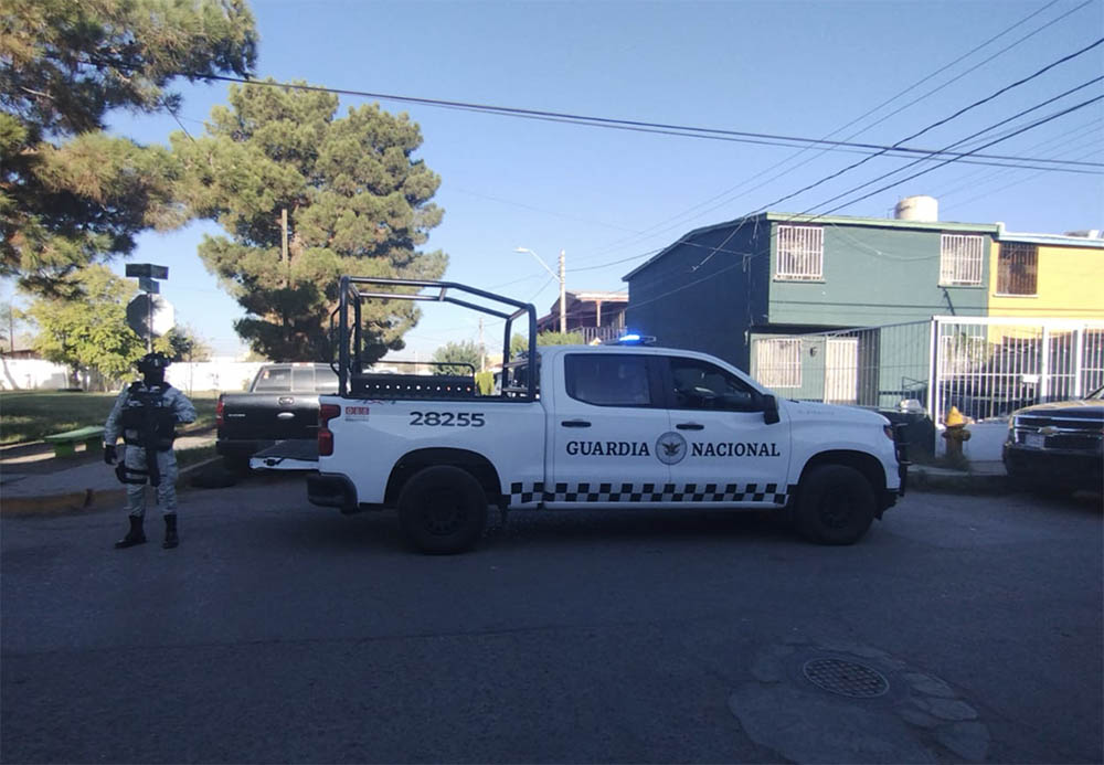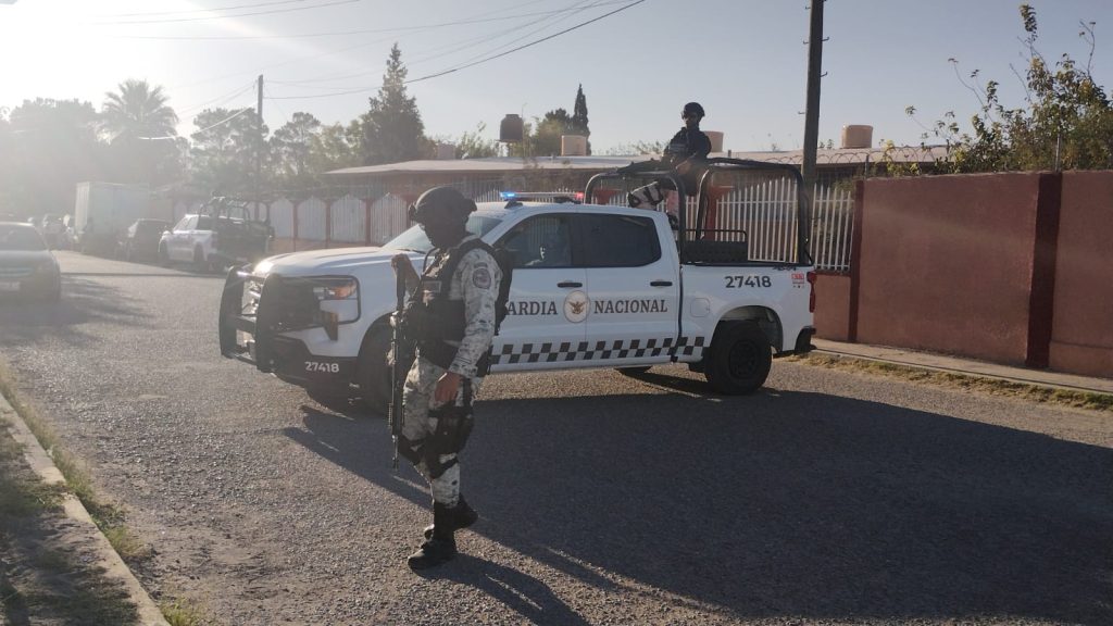 Elementos de la Guardia Nacional y de la Agencia Estatal de Investigación se encuentran realizando un cateo dentro de un domicilio de Infonavit Casas Grandes.