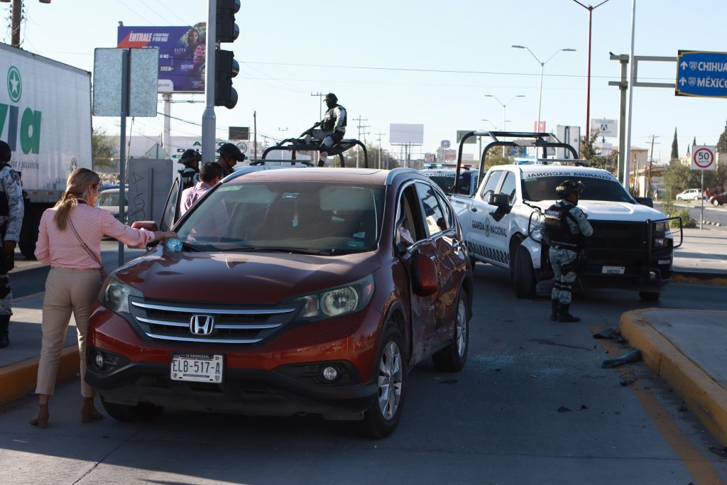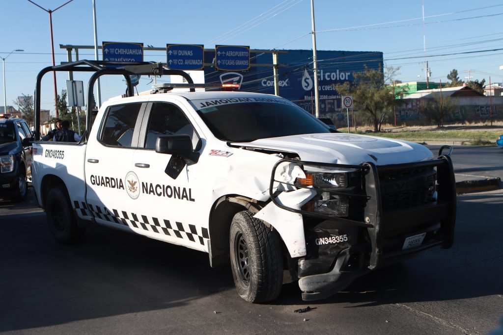 Una unidad de la Guardia Nacional que iba por le carril confinado en la Pedro Meneses y Tecnológico se impactó con una Honda, informaron autoridades de la Coordinación General de Seguridad Vial.