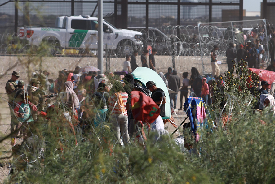 Cientos de migrantes de varias nacionales se encuentran en estos momentos cruzando por la puerta 36 del muro fronterizo.
