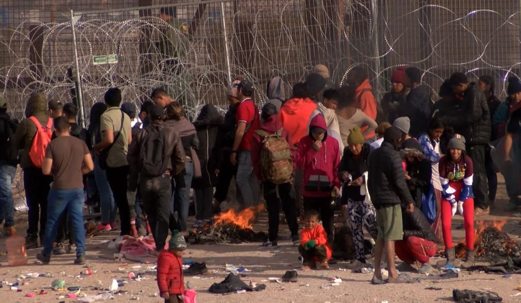 Los migrantes que lograron cruzar, han tenido que encender fogatas para protegerse de las bajas temperaturas que afectan a la frontera.