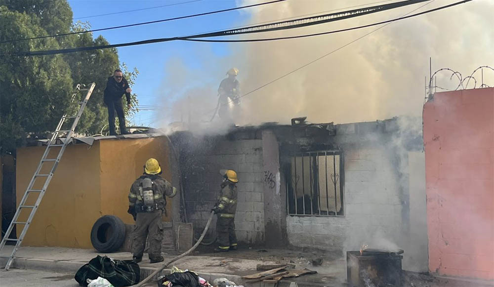 Elementos de la Policía Municipal y del H. Cuerpo de Bomberos acudieron al cruce de las calles Francisco Villa y Defensa Popular, donde el domicilio comenzó a arder alrededor de las 8:00 de la mañana.