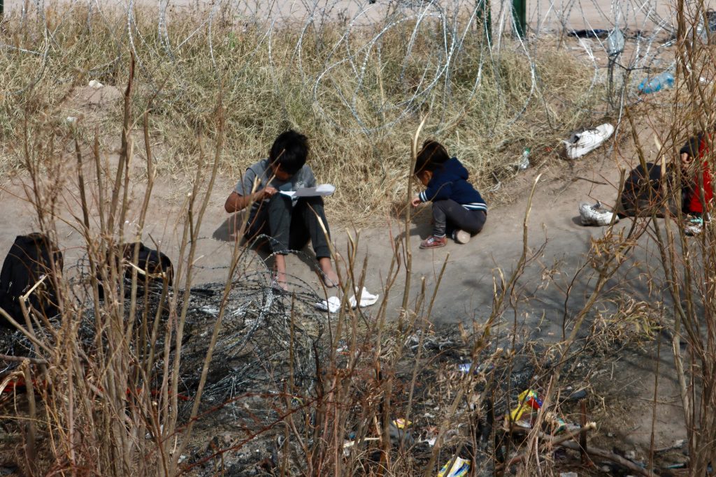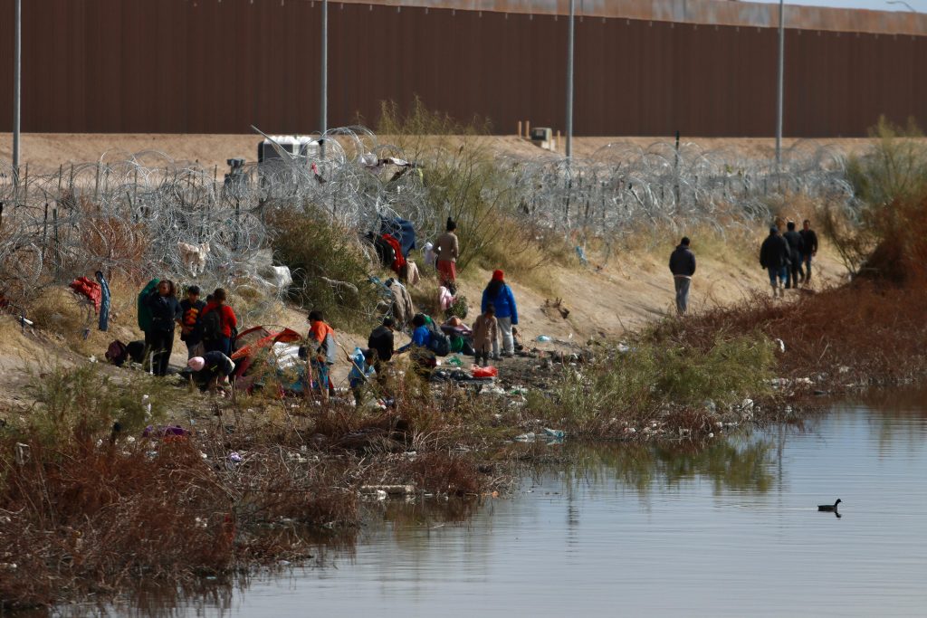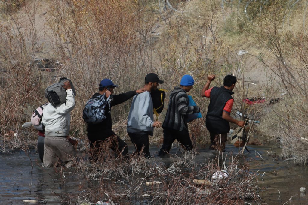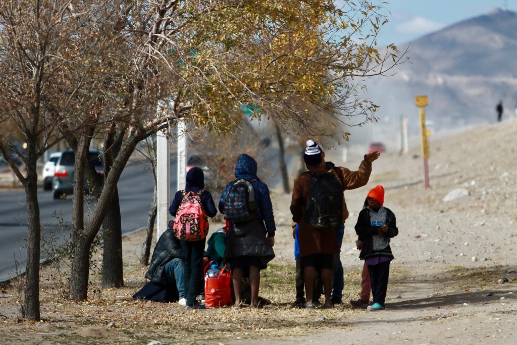 Decenas de migrantes se encuentran esta tarde en los alrededores de la Puerta Fronteriza Número 36, en el bordo del río Bravo, a la espera de cruzar a territorio estadounidense para entregarse a las autoridades.