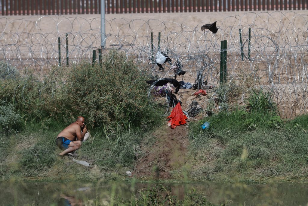 Luego de que autoridades estadounidenses cerraran la puerta fronteriza número 36, por la que habían ingresado miles de indocumentados en los últimos días, algunos migrantes se esconden entre la maleza para tratar de ocultarse de los militares y agentes de CBP.