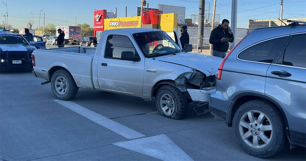 Una camioneta impactó por alcance a otra unidad que permanecía detenida por falla mecánica en el cruce mencionado; no hubo personas lesionadas