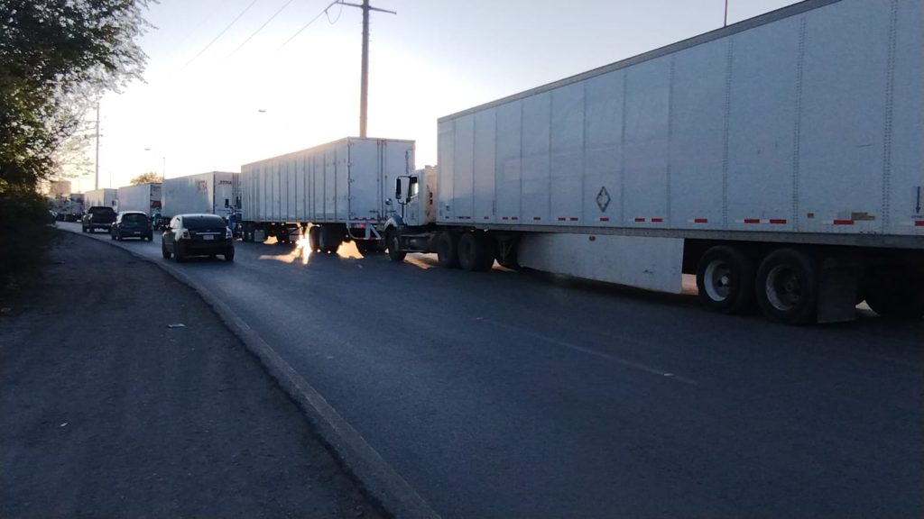 Esta mañana, los camioneros que llevan esperando desde las 3:00 de la tarde de ayer, comenzaron a cruzar con su mercancía hasta los Estados Unidos.
