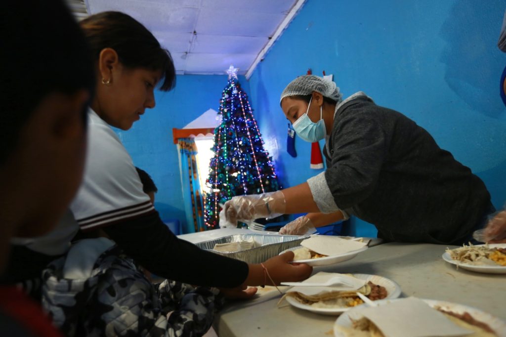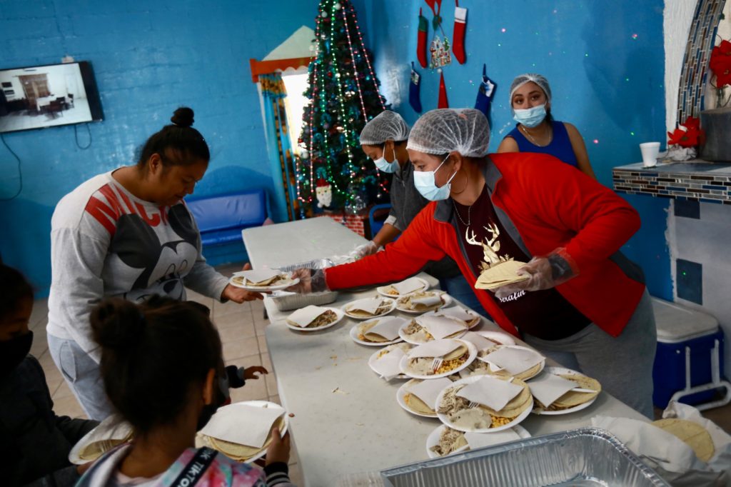 Cientos de migrantes comieron pavo durante este día en el albergue Pan de Vida, de acuerdo con un recorrido realizado por Norte Digital.