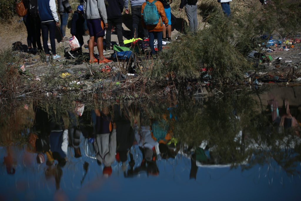 En el lado de El Paso, un grupo de extranjeros encendió una fogata, mientras que otros jugaban con un balón de futbol.