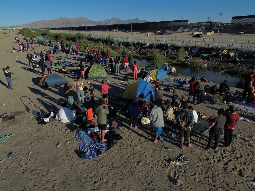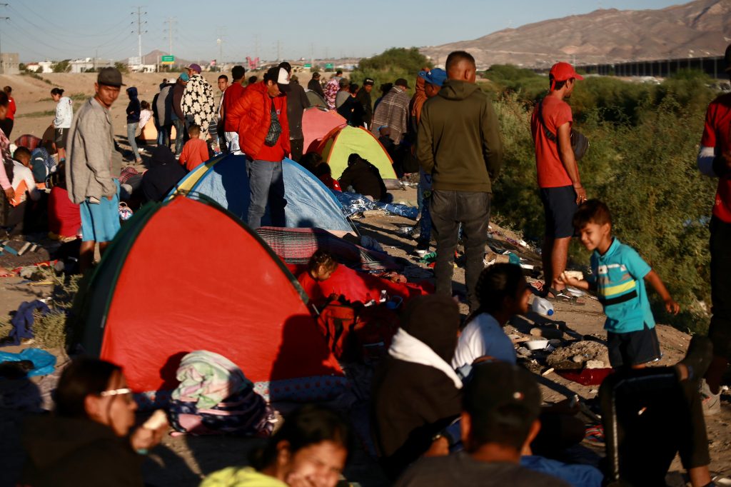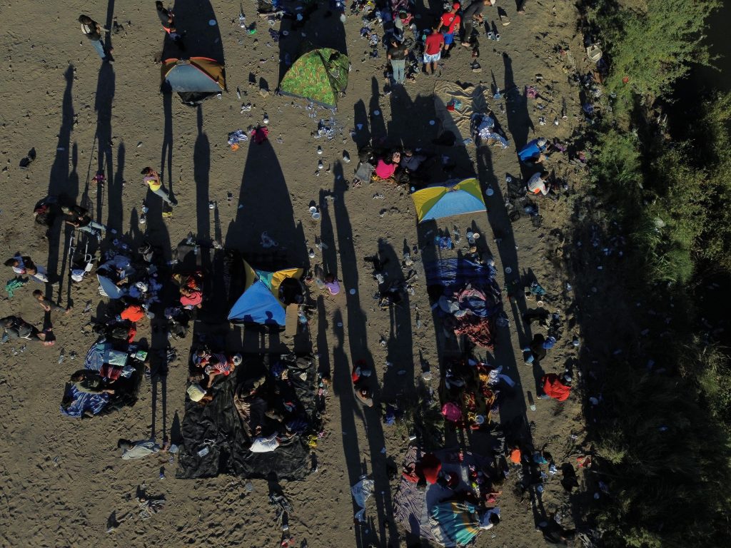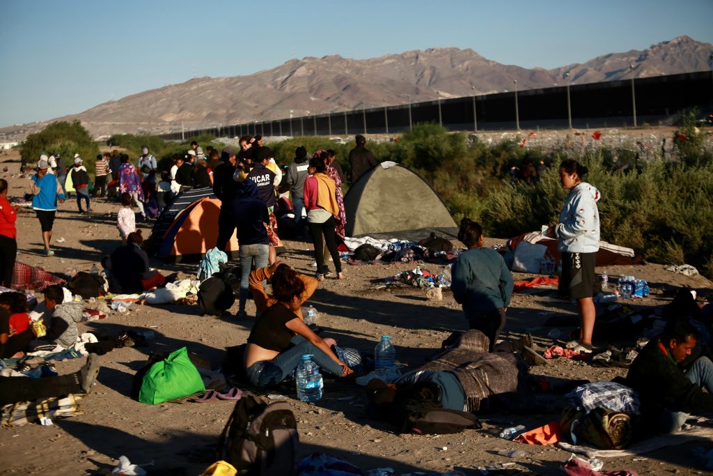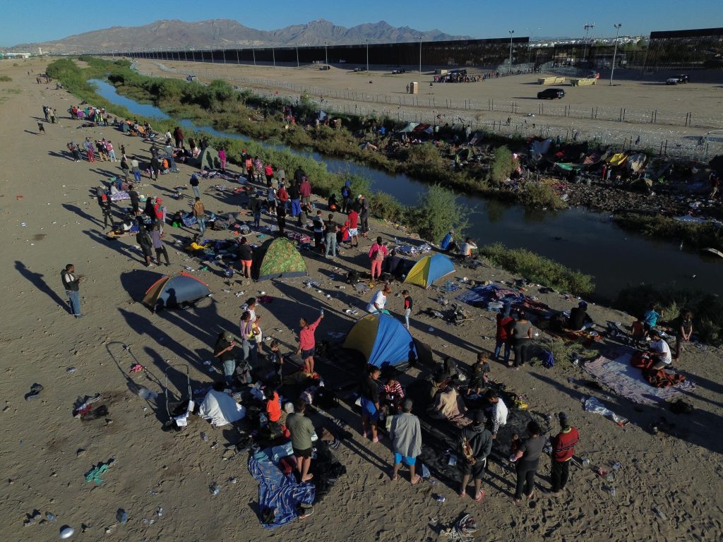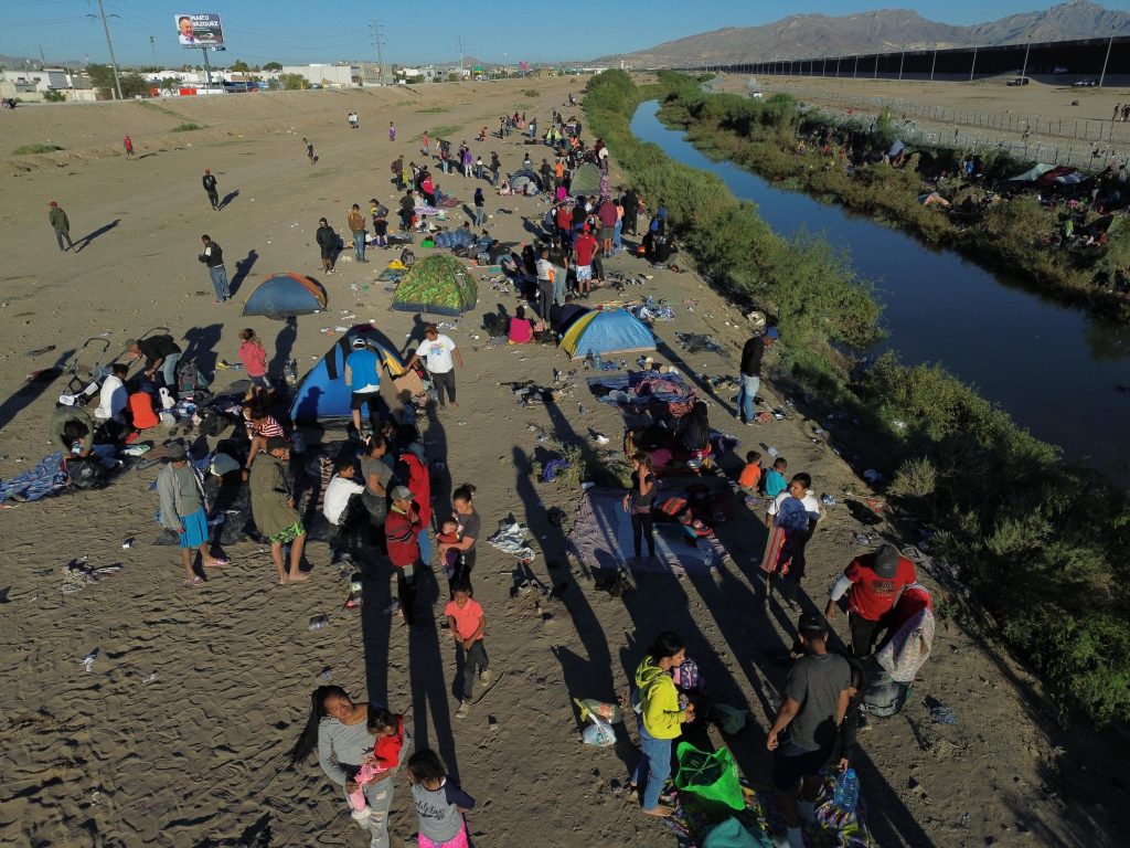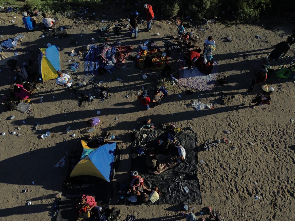 Alrededor de 200 migrantes durmieron anoche en los linderos del río Bravo, junto a la puerta fronteriza número 36.