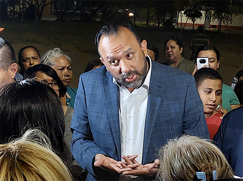 En estos momentos el secretario del Ayuntamiento, Héctor Ortiz Orpinel dialoga con ciudadanos del suroriente.