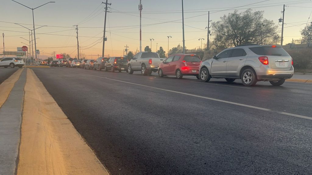 En el Puente Libre la fila de vehículos llega hasta el Monumento al Club Rotario y de acuerdo con estimaciones del Customs Border Patrol (CBP) el tiempo de espera es de entre 50 minutos a una hora.