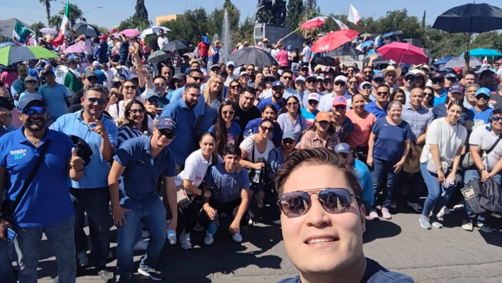 Chihuahua, Chih.- Junto con miles de chihuahuenses, líderes de partidos políticos y representantes de la sociedad civil, el presidente del Comité Directivo Estatal, Gabo Diaz Negrete, celebró la entrega de la constancia que acredita a Xóchitl Gálvez como responsable del Frente Amplio Por México.