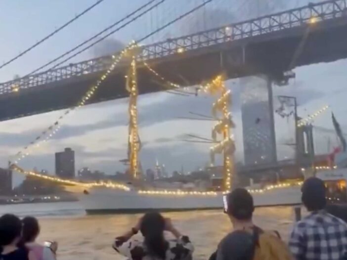 “Buque escuela de la Armada de México choca contra el Puente de Brooklyn en Nueva York.”