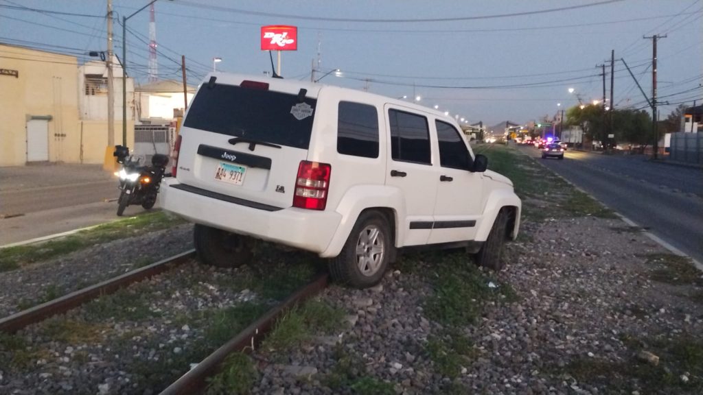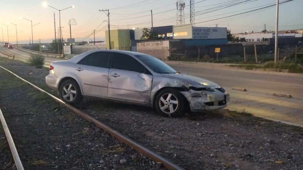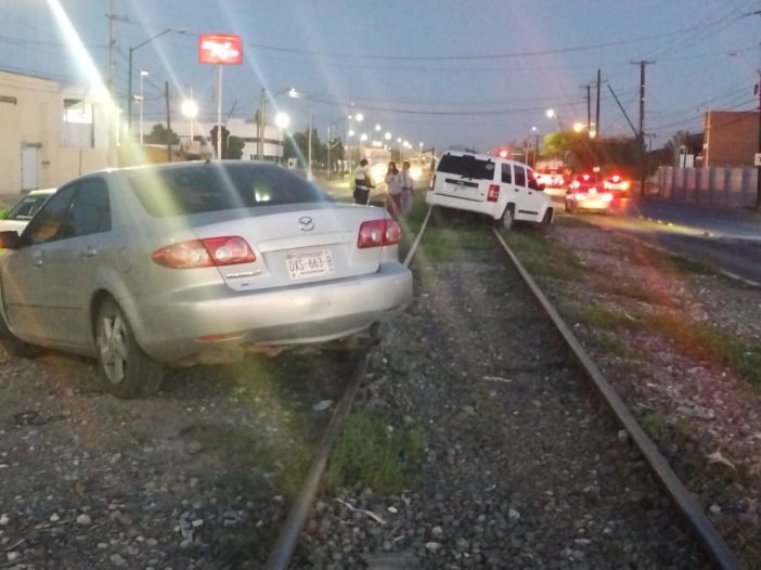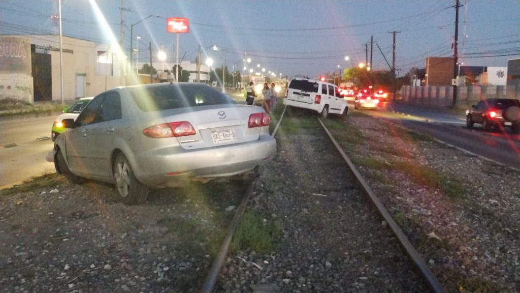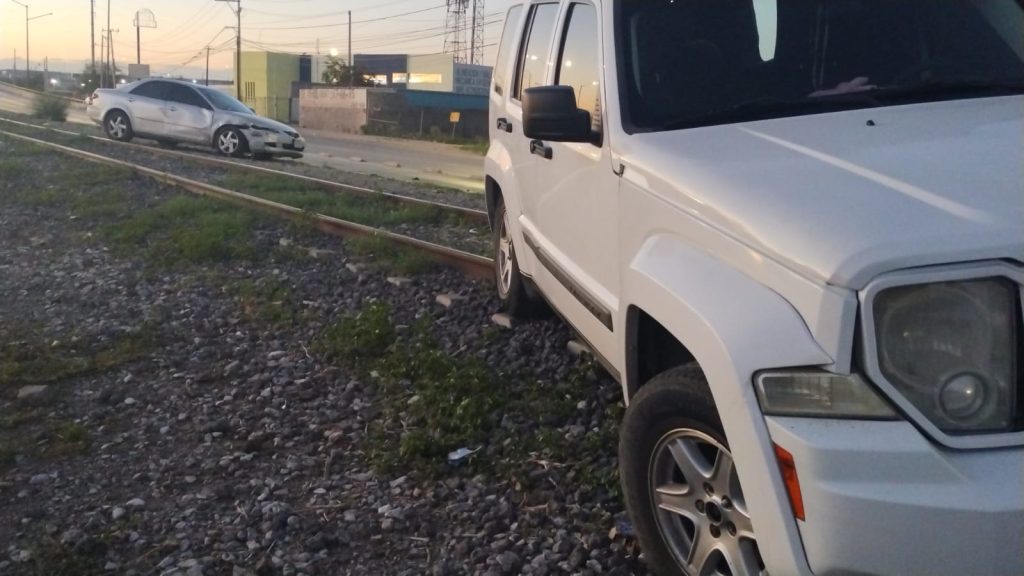 Tras el choque ambos vehículos terminaron sobre las vías del tren.