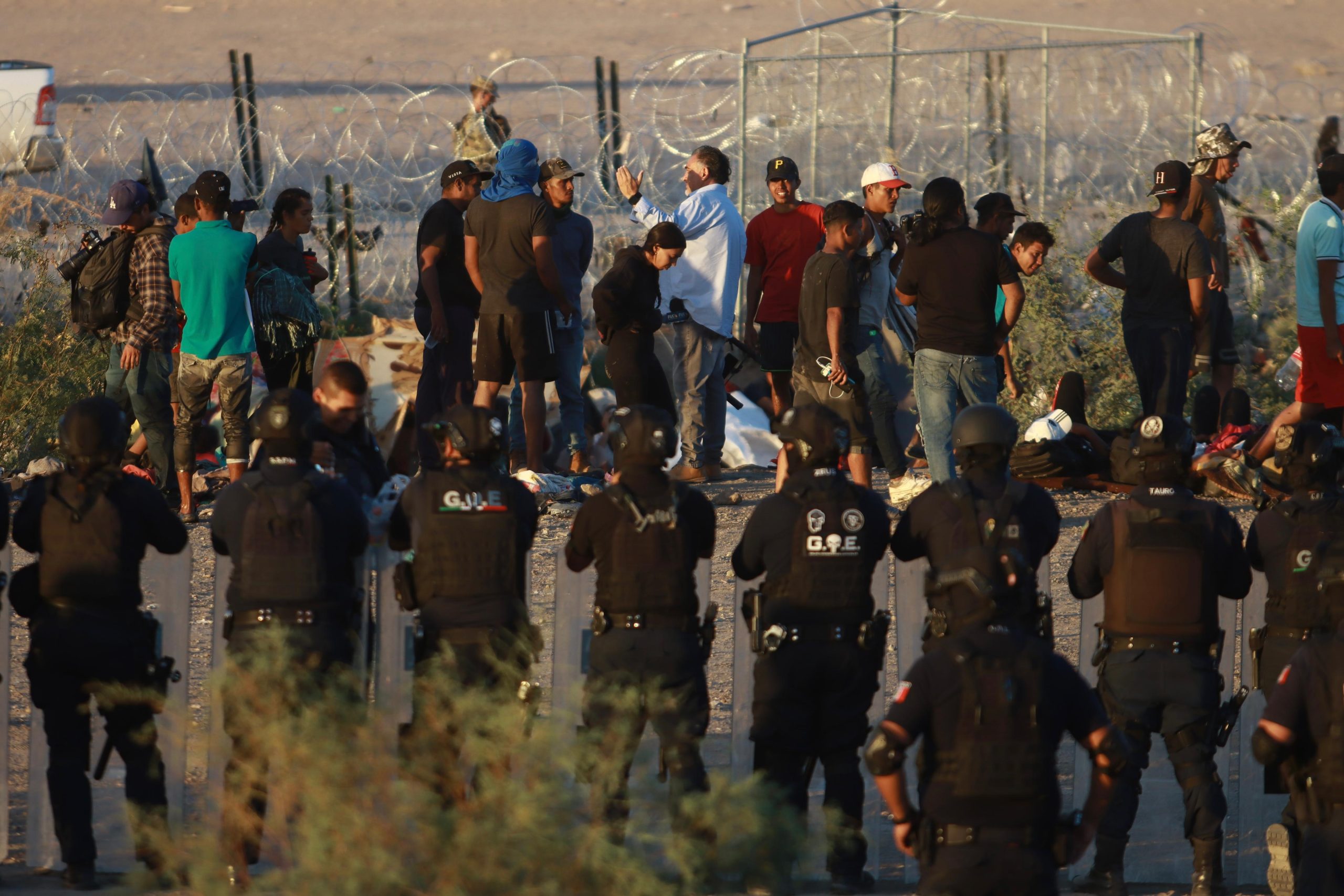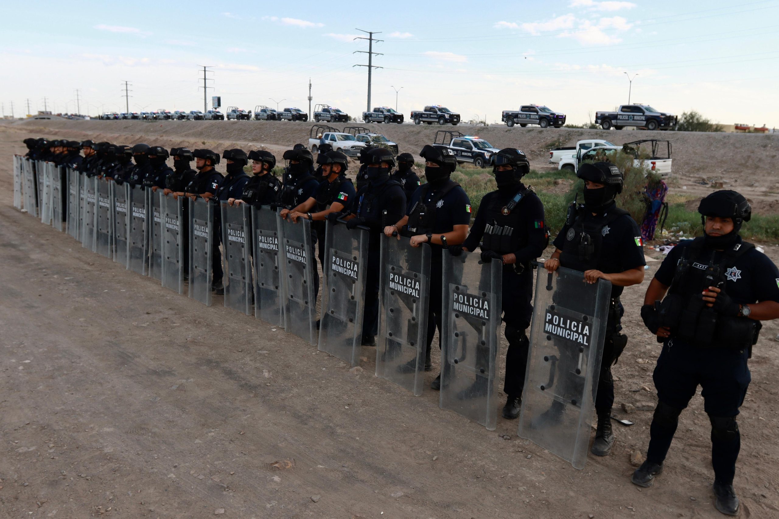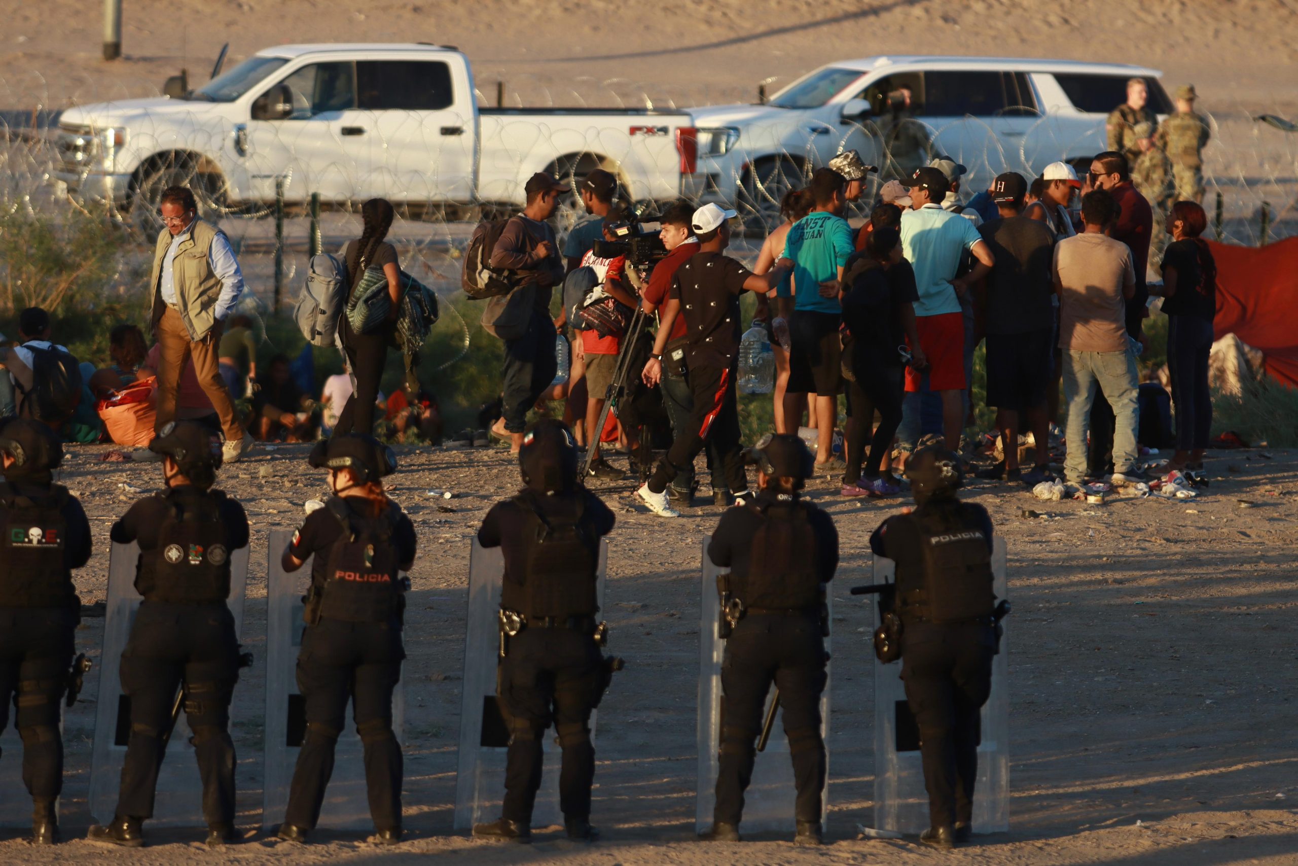 Esta tarde el Instituto Nacional de Inmigración lleva a cabo un operativo en los linderos del río Bravo para disuadir a los miles de migrantes que recién llegaron a la ciudad para que no permanezcan a la intemperie.