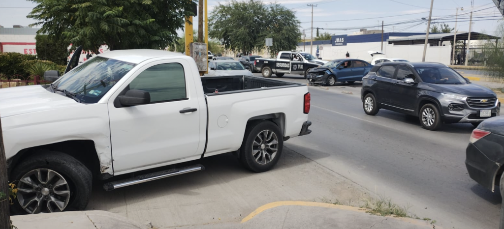 Los conductores de un vehículo Jetta color azul y de una camioneta Chevrolet Silverado blanca protagonizaron un accidente automovilístico en el cruce de las calles Sonora y bulevar Zaragoza.