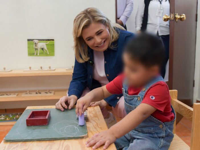AQUILES SERDÁN, Chih.- La gobernadora Maru Campos conoció de primera mano el trabajo que se desarrolla en la Estancia Infantil Montessori, ubicada en el área femenil del Centro de Reinserción Social (Cereso) No. 1 de Aquiles Serdán, en beneficio de las hijas e hijos de las Personas Privadas de la Libertad (PPL).