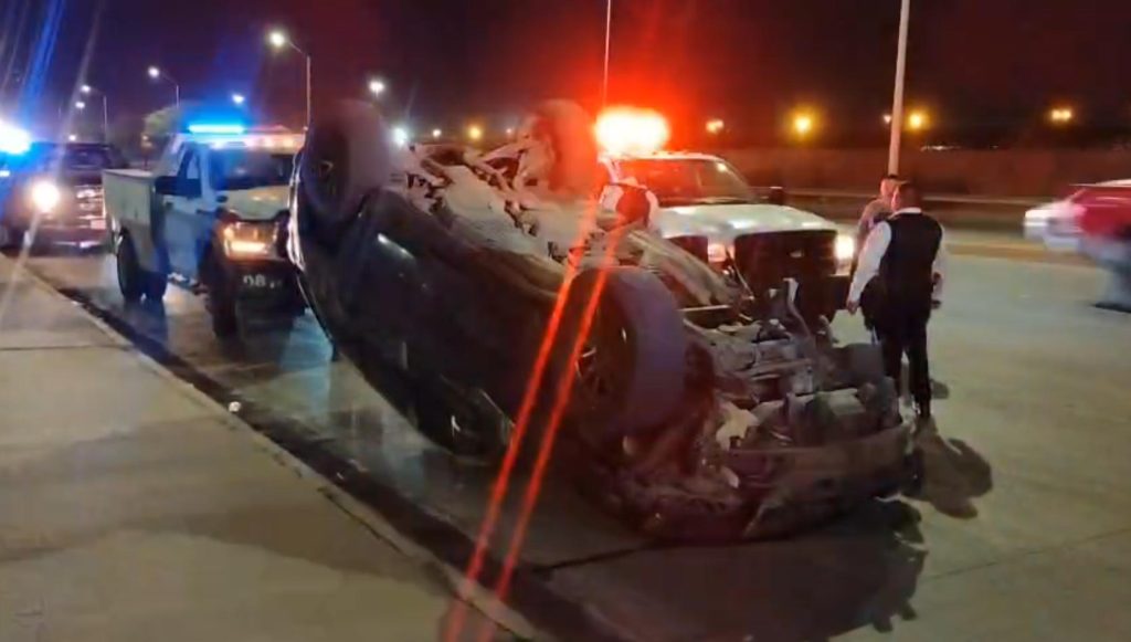 Una volcadura se registró la noche de este jueves en el bulevar Juan Pablo II, también conocido como Cuatro Siglos, a la altura del puente con la prolongación Hermanos Escobar.