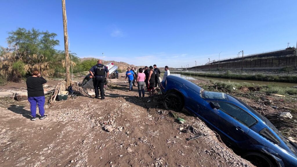 Unos metros más al norte, en el cauce del río, otro vehículo quedó trambucado; un deportivo azul con placas de Texas del que, al cierre de este reporte, no habían llegado los dueños a reclamarlo.