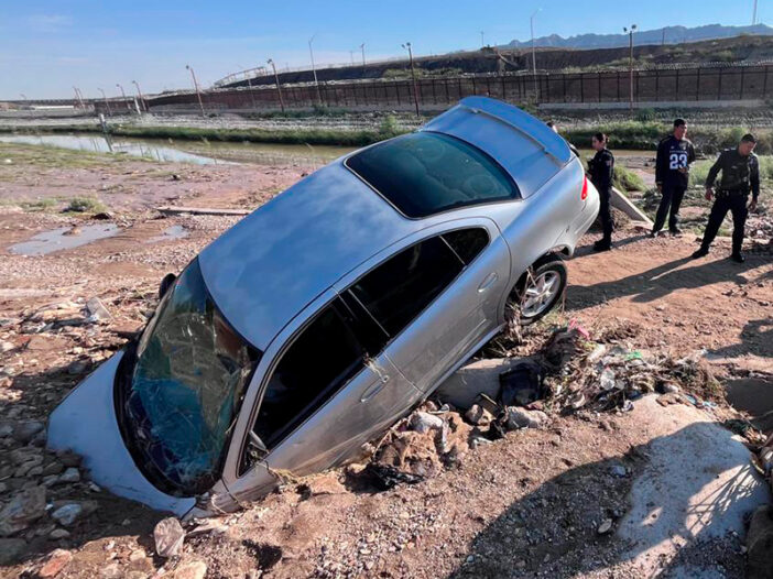 Unos metros más al norte, en el cauce del río, otro vehículo quedó trambucado; un deportivo azul con placas de Texas del que, al cierre de este reporte, no habían llegado los dueños a reclamarlo.