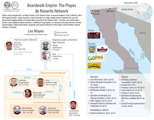 El gobierno de Estados Unidos sancionó a la facción La Mayiza del Cártel de Sinaloa, al congelar bienes y prohibir transacciones a siete de sus operadores y a varias empresas fachada que presuntamente servían para lavar dinero en Baja California.