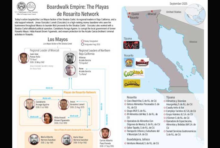 El gobierno de Estados Unidos sancionó a la facción La Mayiza del Cártel de Sinaloa, al congelar bienes y prohibir transacciones a siete de sus operadores y a varias empresas fachada que presuntamente servían para lavar dinero en Baja California.
