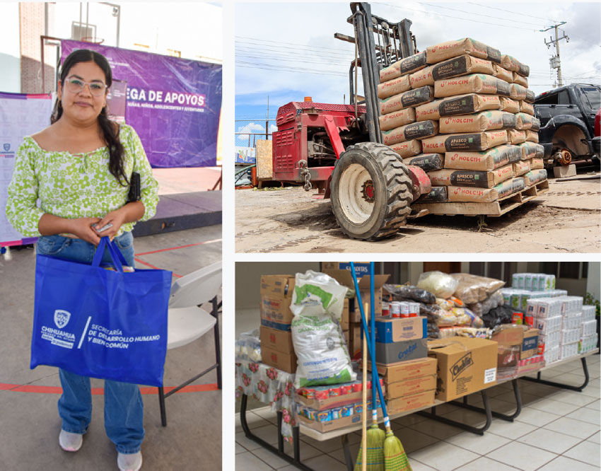 Igualmente, en los municipios de Chihuahua y Juárez se otorgaron 9 mil 510 apoyos en especie, 7 mil 826 despensas, 7 mil 552 cobijas, 247 colchonetas, 141 paquetes de material de construcción, mil 407 bultos de cemento, 183 kits de baño, 760 kits de higiene, dos tanques de gas, tres calentones, mil 257 cubetas de impermeabilizante, mil láminas, 613 cubetas de pintura vinílica y 2 mil 013 abanicos, con una inversión estimada de $15,514,866.