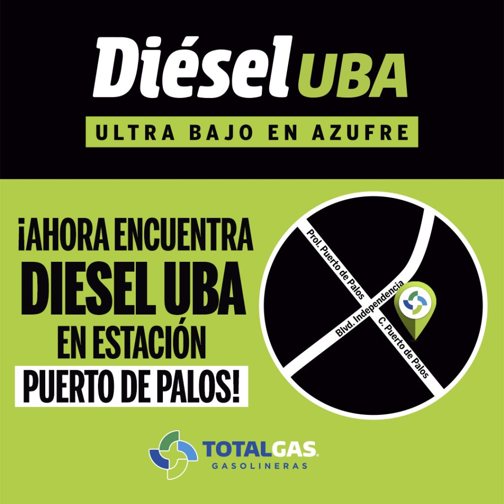 TotalGas® invita a todos sus clientes con unidades de diesel a que ahora también carguen Diesel UBA en su estación Puerto de Palos.