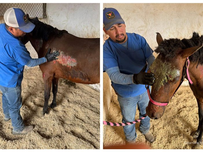Médicos zootecnistas de Vet’s on Road, un grupo de veterinarios especializados en el rescate de caballos, reportaron que la yegua presenta una evolución favorable, a pesar de las lesiones provocadas por la exposición a altas temperaturas.