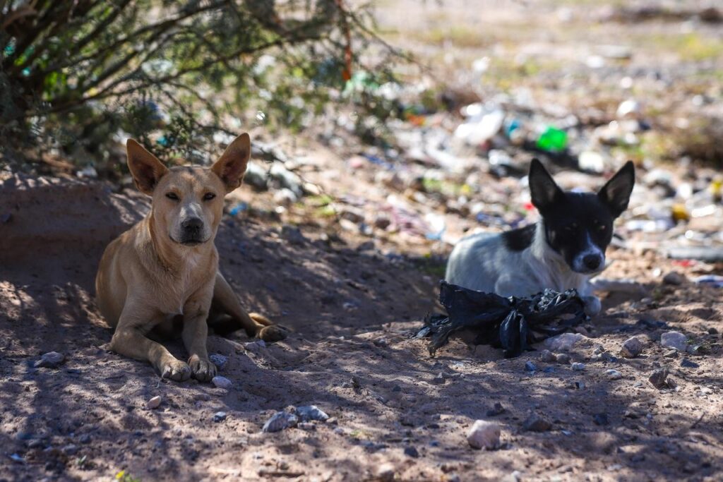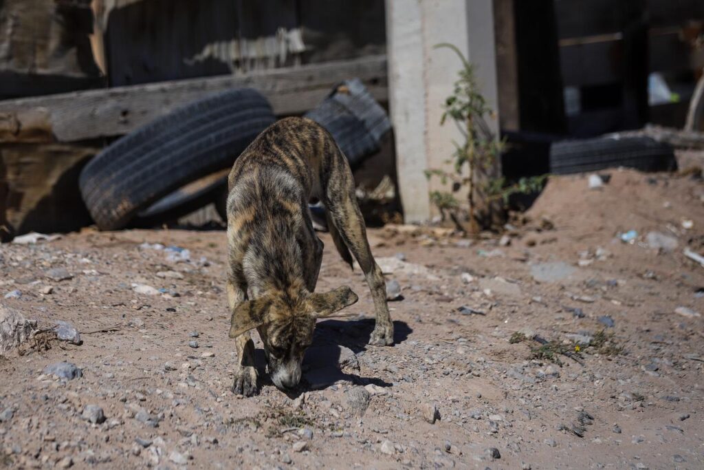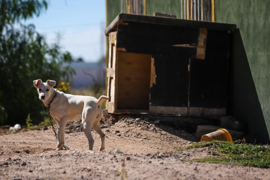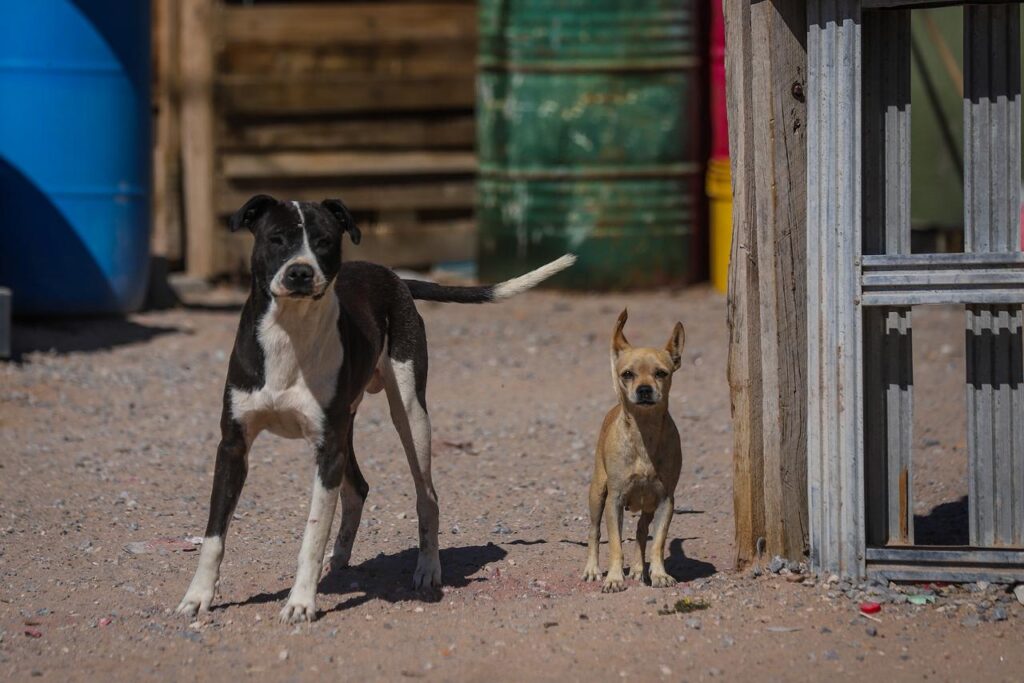 Reporteros de Norte Digital no ubicaron las manadas que los vecinos aseguraron que existían por todos rumbos, pero sí observaron perros solitarios o en grupos de dos o tres. Muchos andan sueltos detrás de precarias barreras hechas con tarimas y llantas, que no impiden su entrada ni salida. Los menos permanecen amarrados frente a las viviendas.